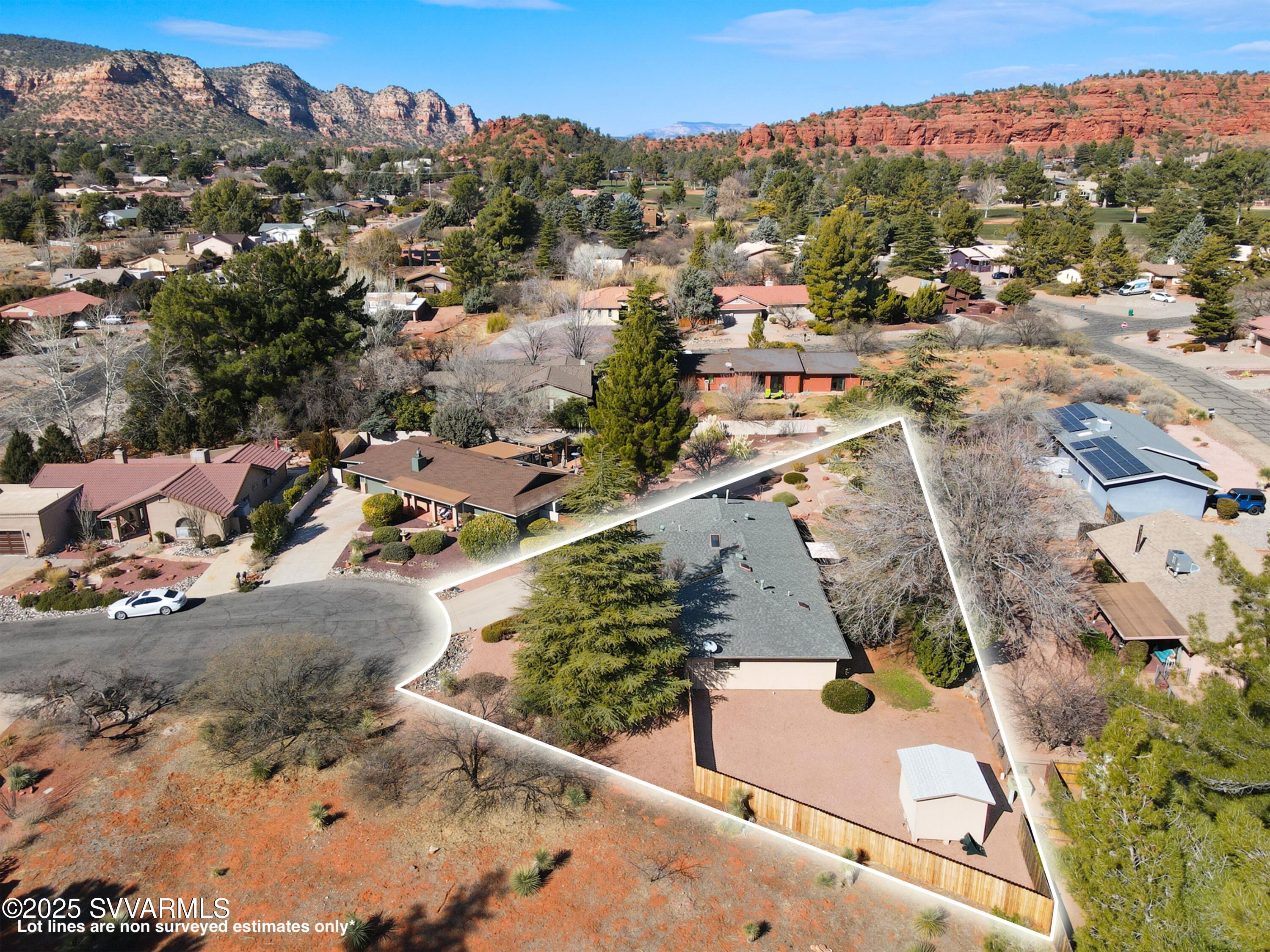 Nestled in the breathtaking beauty of Sedona's Red Rocks, this 3-bedroom, 2-bathroom home offers an open floor plan designed for comfort and effortless entertaining. Situated on a spacious lot, the property provides ample outdoor space to enjoy the striking mountain views. Inside, the seamless flow between the living, dining, and kitchen areas creates a warm and inviting atmosphere, perfect for hosting guests. Whether you're relaxing on the patio, taking in the natural surroundings, or gathering with friends and family, this home is an ideal retreat for those who appreciate both style and serenity. RV gate with plenty of room to store your motorized toys. Home and adjacent lot at 30 W. Valley Dr. is available for purchase by same owner. Call listing agent for details.